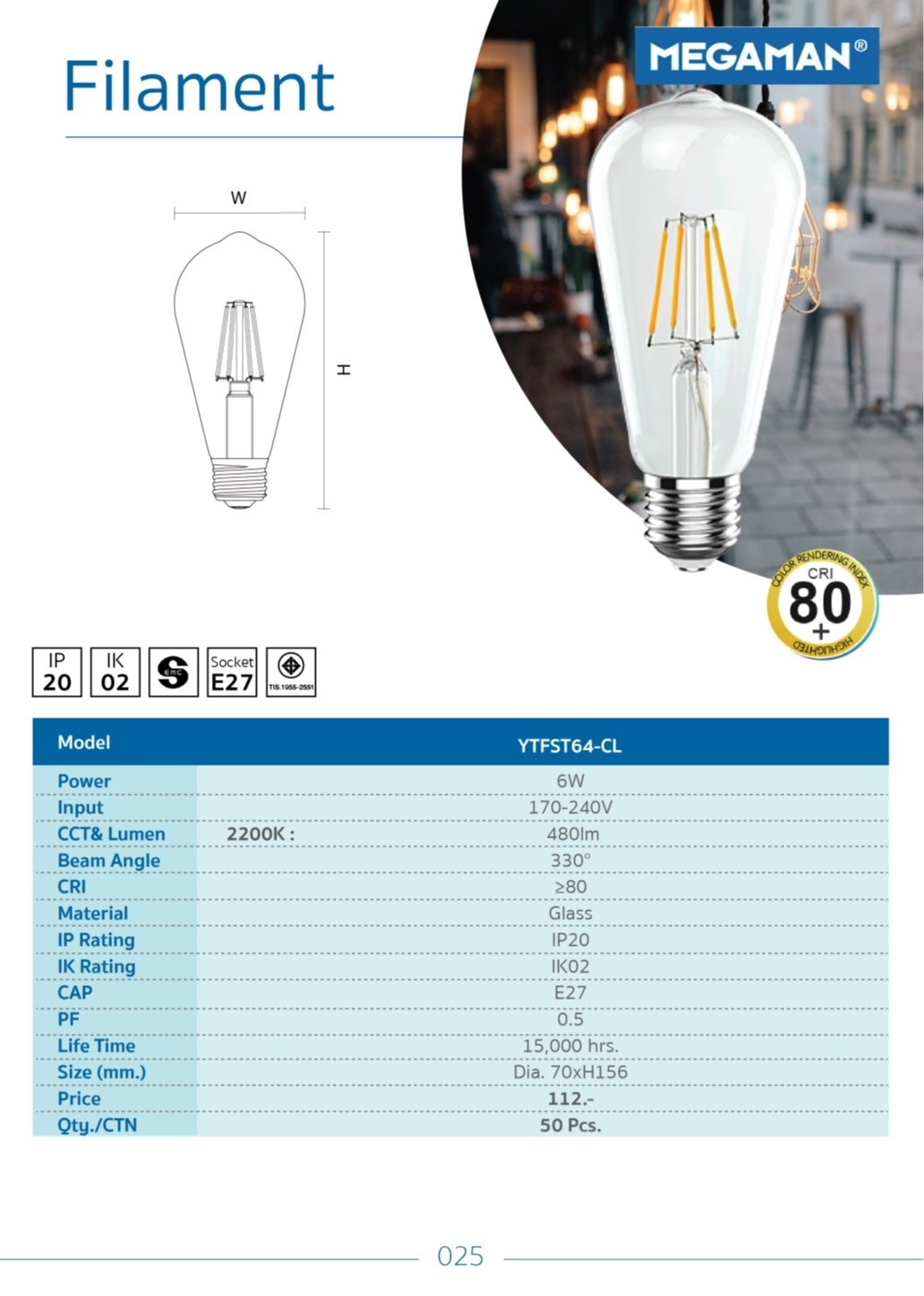 หลอดไฟ LED MEGAMAN Filament E27 A64